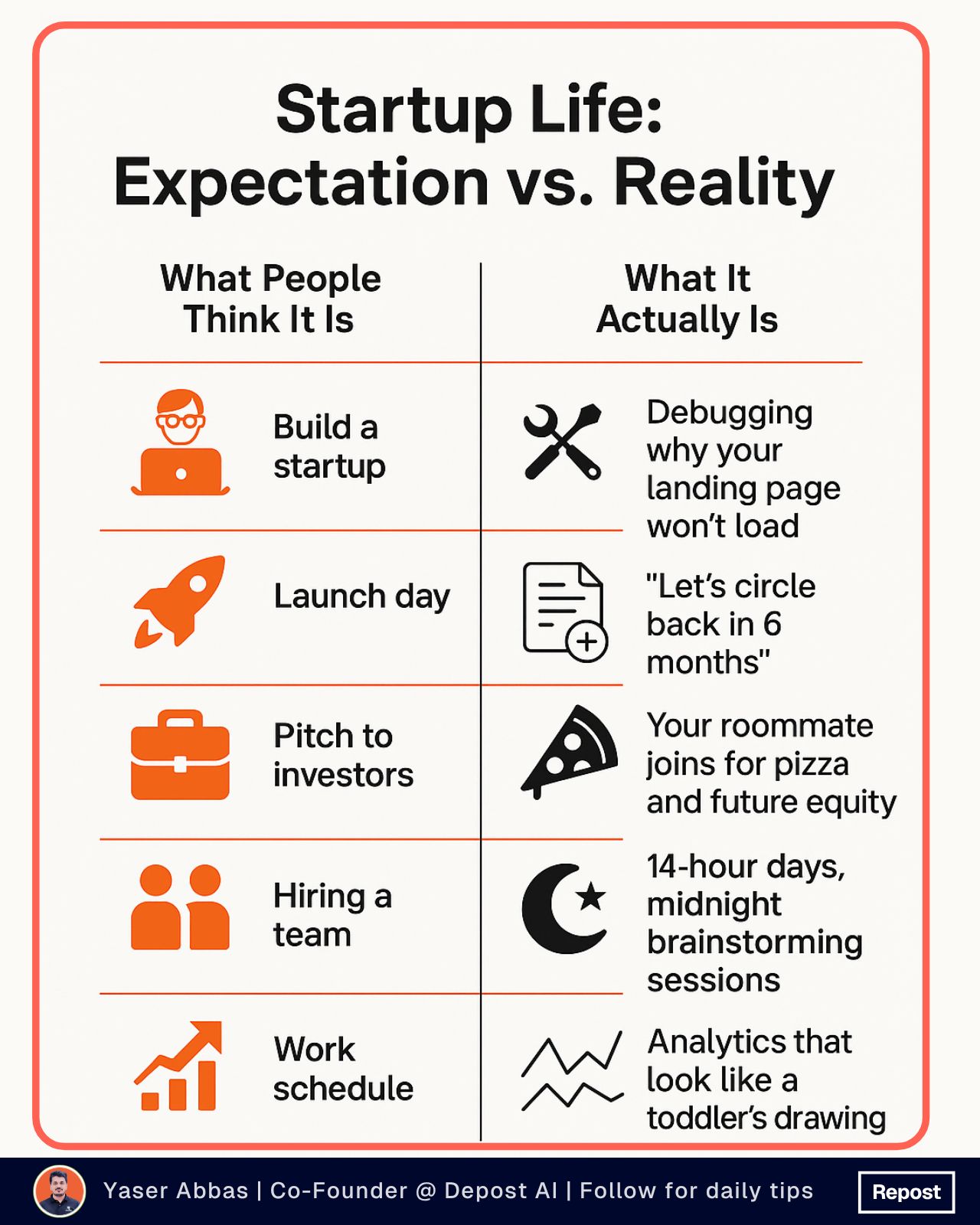 Yaser Abbass The “dream vs. dirt” is what every founder needs to hear. That mix of chaos and grit is where the real magic happens.